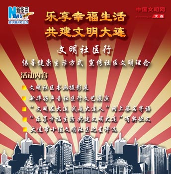 為深入貫徹落實市委關(guān)于建設(shè)富庶美麗文明大連的綱要精神,充分發(fā)揮社區(qū)基層組織作用,加快文明社區(qū)的創(chuàng)建步伐,大連文明網(wǎng)聯(lián)合新華網(wǎng),開展"樂享幸福生活 共建文明大連"公益文明社區(qū)行活動。旨在倡導(dǎo)健康文明的生活方式,宣傳文明社區(qū)的文化理念。