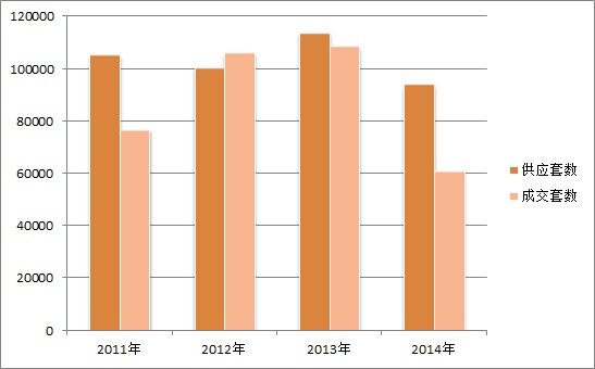2011—2014廣州全市商品住宅成交情況統(tǒng)計圖