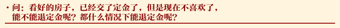 答:《中華人民共和國合同法》第一百一十五條對定金問題規(guī)定如下:給付定金的一方不履行約定的債務(wù)的,無權(quán)要求返還定金;收受定金的一方不履行約定的債務(wù)的,應(yīng)當(dāng)雙倍返還定金。即因合同條款達(dá)不成一致意見可以退,另外,必須是在認(rèn)購書約定的期限內(nèi)來簽合同,要想退定金必須要證明這一點。購房人可以通過合同條件談判時雙方修改的記錄來證明,也可以通過雙方談話的錄音來證明。您本身不想要此房,屬于違約行為,但也通過增加補(bǔ)充協(xié)議的方式達(dá)到了退定金的目的。