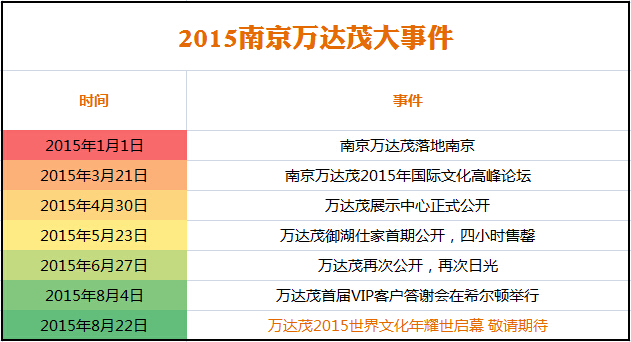 2015世界文化年當(dāng)天,將有俄羅斯、埃及、巴西等眾多國際的使節(jié),聯(lián)合國開發(fā)計劃署項目官等世界名流,大家歡聚一堂,除了見證這一盛世活動的啟幕,更將一起規(guī)劃出南京萬達茂國際街,南京最長的一個主題步行商業(yè)街的未來發(fā)展,打造出一個原汁原味的世界風(fēng)情街。