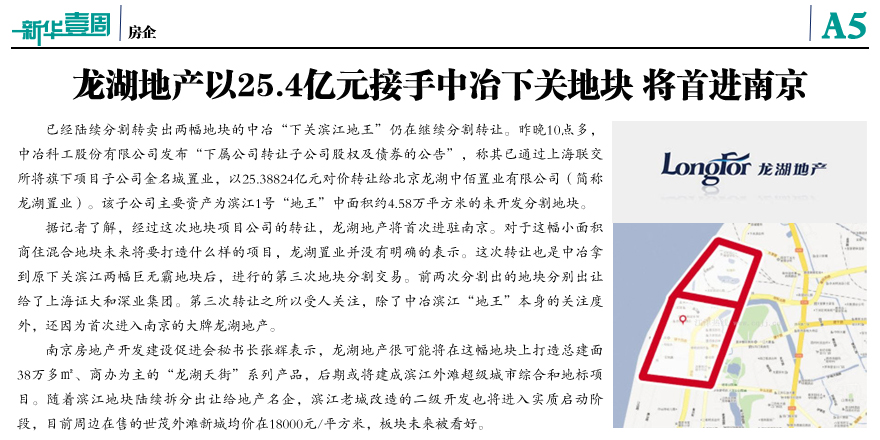 龍湖地產(chǎn)接手中冶地塊