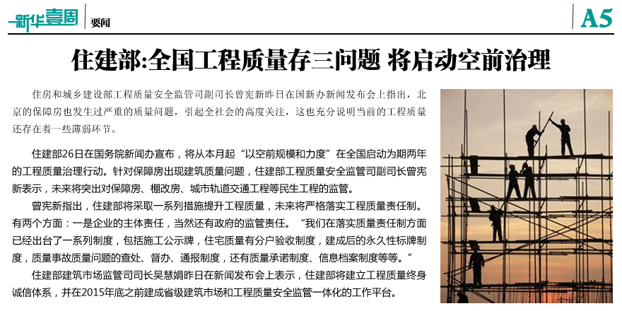 住建部:全國(guó)工程質(zhì)量存三問(wèn)題