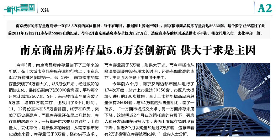 南京商品房庫存5.6萬套創(chuàng)新高