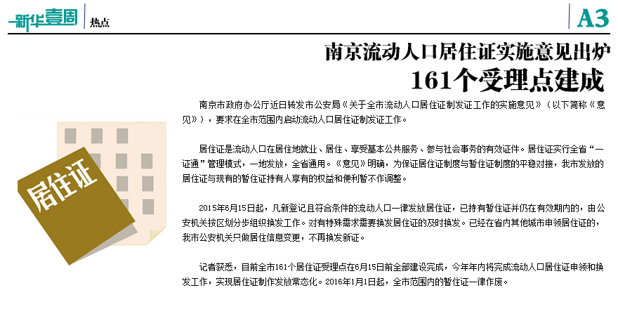 南京流動(dòng)人口居住證實(shí)施意見(jiàn)出爐