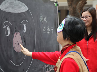 現(xiàn)場(chǎng)義工幫忙 戴眼罩