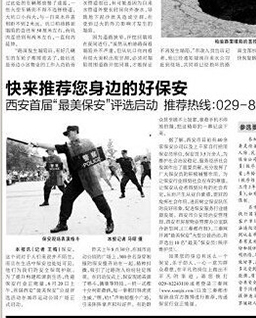 為提升構(gòu)建和諧新生活,傳遞保安行業(yè)正能量,新華網(wǎng)將在西安等全國(guó)30多個(gè)城市展開“最美保安”大型公益活動(dòng)。該活動(dòng)旨在傳播“中國(guó)夢(mèng)”,讓保安行業(yè)得到社會(huì)應(yīng)有的尊重,讓保安從業(yè)者得到應(yīng)有的社會(huì)肯定,從產(chǎn)生從業(yè)自豪感,更好的發(fā)揮社會(huì)作用,進(jìn)而樹立保安隊(duì)伍的良好形象,促進(jìn)保安服務(wù)行業(yè)健康發(fā)展。
