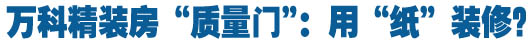 “毒地板”風(fēng)波還沒有平息,萬科的門前又圍滿了砸場子的業(yè)主。這次的罪魁禍?zhǔn)走€是精裝修。深圳萬科第五園六期當(dāng)初宣稱“每平方米送3000元精裝修”,最近出現(xiàn)了大面積發(fā)霉、墻面涂料脫落等問題,拆開裝修材料一看:衣柜、鞋柜竟然都是“紙”做的。400萬元的真金白銀卻換來開發(fā)商的粗制濫造,業(yè)主們怎么能咽下這口氣。 …[詳細(xì)] |