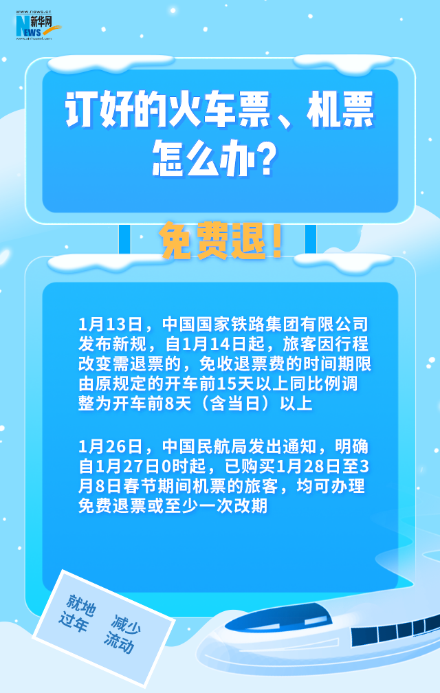 2021年春節(jié)假期將近。為減少疫情傳播風(fēng)險(xiǎn),國家提倡大家就地過年,減少流動。已經(jīng)訂好的火車票、機(jī)票怎么辦?商超、快遞都正常營業(yè)嗎?還能出去玩耍嗎?農(nóng)民工、在校學(xué)生怎么辦?空巢老人、留守兒童怎么辦?27日上午,國務(wù)院聯(lián)防聯(lián)控機(jī)制召開新聞發(fā)布會,結(jié)合中辦國辦印發(fā)的《關(guān)于做好人民群眾就地過年服務(wù)保障工作的通知》,對大家關(guān)心的多個(gè)問題做出解答。