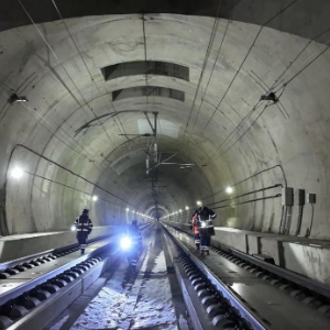 哈尔滨工务段高铁路桥车间职工们在王凤西山隧道内巡检。新华社记者 王松 摄