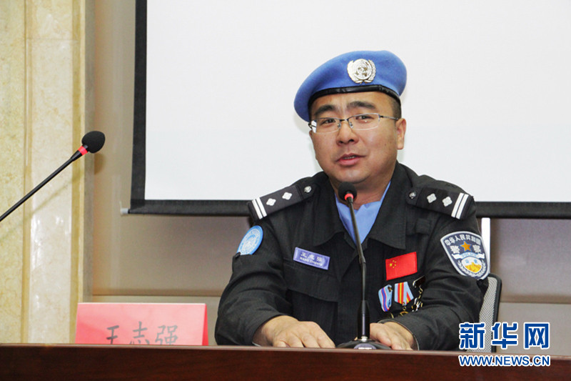 ????授課期間,維和英雄楊占江為學(xué)員們做了以《中國力量 藍(lán)盔風(fēng)采》為題目的演講,講述了第二支赴利比里亞維和警察防暴隊(duì)遠(yuǎn)赴西非、攻堅(jiān)克難、歷盡艱辛的維和經(jīng)歷,分享了他們遠(yuǎn)離祖國、恪盡職守、感人至深的心路歷程,集中展現(xiàn)了防暴隊(duì)在復(fù)雜動(dòng)蕩的局勢、艱苦惡劣的環(huán)境、埃博拉疫情肆虐的形勢下取得的卓越成就,充分展示了維和防暴隊(duì)文明之師、威武之師、和平之師的良好形象。授課結(jié)束后,維和英雄與學(xué)員們進(jìn)行了座談交流,防暴隊(duì)副隊(duì)長王志強(qiáng)和隊(duì)員楊占江一一解答了學(xué)員們提出的問題,并與現(xiàn)場學(xué)員合影留念。(格日勒朝克圖 張志敏)
