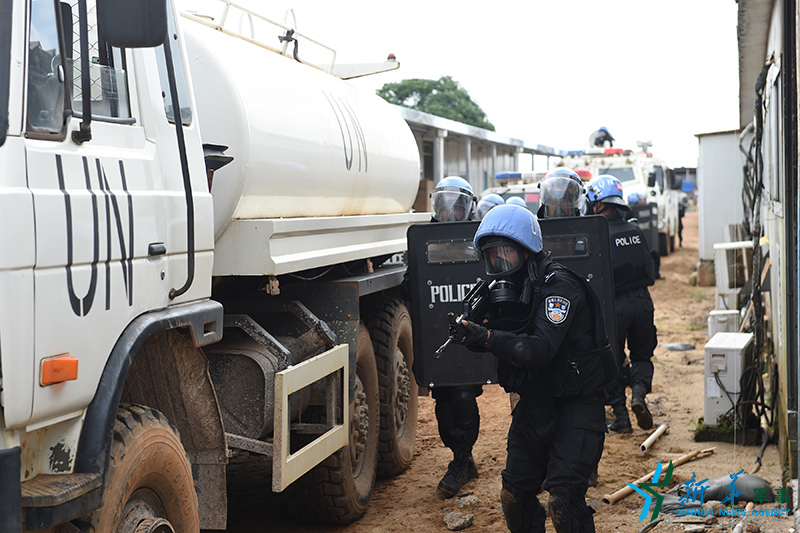 中國第四支駐利比里亞維和警察防暴隊展開應急處突演練