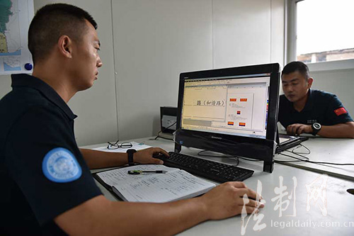 圖為防暴隊隊員正在設(shè)計路名