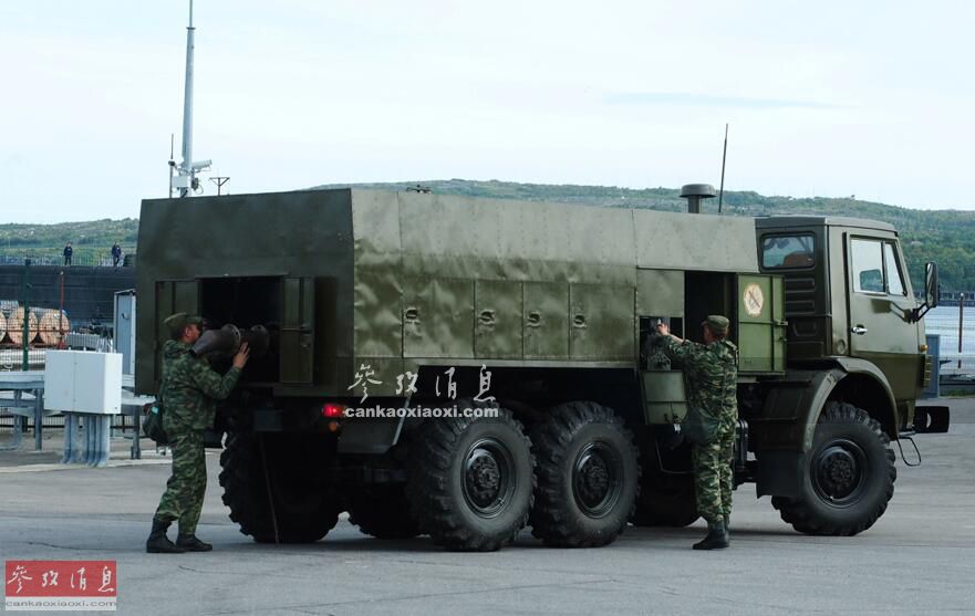 圖為俄軍士兵在調(diào)試新型煙幕施放車。
