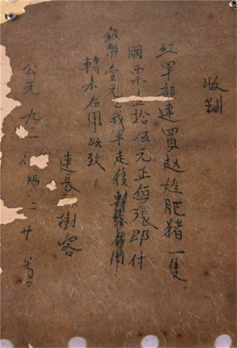 ????70多年過去,木板上的文字依稀可辨:“我們在這塊田內(nèi)割了青稞一千斤,我們自己吃了。這塊木板可以作為我們購買你們這些青稞的憑證,請你們歸來以后,拿住這塊木板,向任何紅軍部隊(duì)或蘇維埃政府,都可兌取與我們吃你們青稞價(jià)值相等的銀子、茶葉或你們所需的物品。在你們還未曾兌得這些東西之前,需要好好保存這塊木牌子”,落款是前敵總政治部。