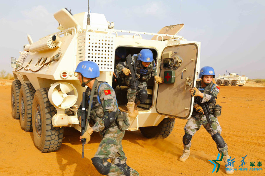 2014年10月20日,中國第二批赴馬里維和警衛(wèi)分隊實施行進間處突演練——范存印攝