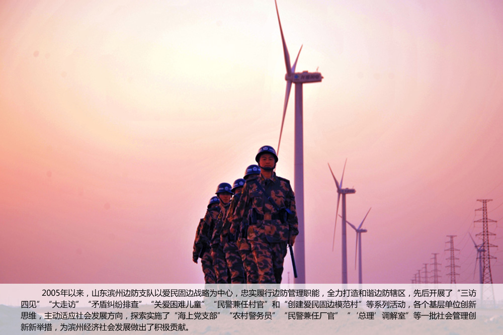 ????自2005年以來,山東邊防總隊濱州邊防支隊以“愛民固邊戰(zhàn)略”為中心,忠實履行邊防管理職能,把“訪民情、知民意、排民憂、解民難”作為具體的愛民行動,打造和諧邊防轄區(qū)。
