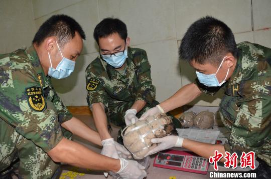 圖為官兵正在稱量毒品。