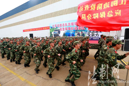 圖為江蘇邊防總隊(duì)后勤應(yīng)急保障拉動演練隊(duì)員在緊急集結(jié)