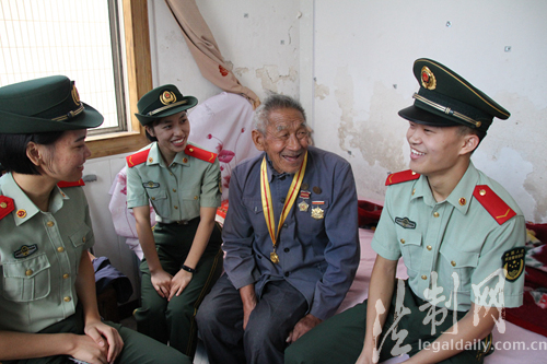 江蘇鎮(zhèn)江邊檢站官兵慰問(wèn)抗戰(zhàn)老兵 聆聽(tīng)抗戰(zhàn)歷史