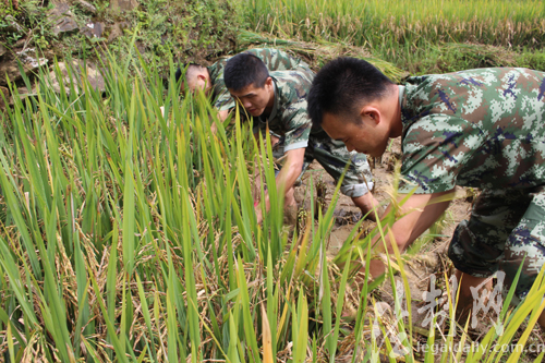 ????原標題:金穗中的一抹綠 云南金平邊防開展“知民族風俗 幫駐地農(nóng)忙”主題黨日活動