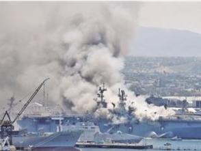????“好人理查德”號兩棲攻擊艦火災現(xiàn)場濃煙滾滾