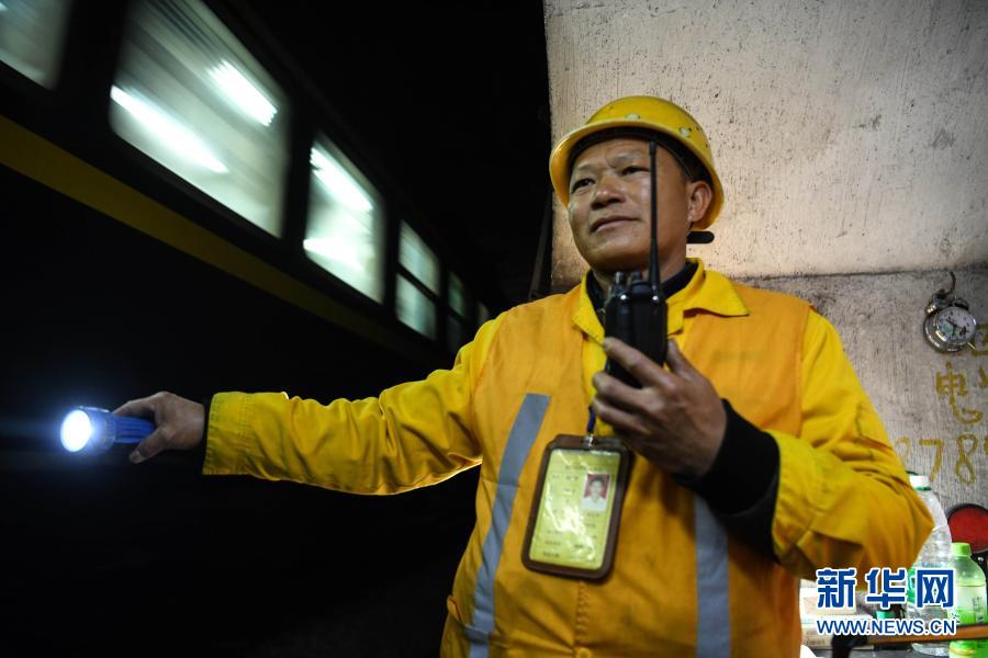 在廣西河池境內(nèi)黔桂鐵路線上的鄧山隧道,中國鐵路南寧局集團有限公司柳州工務(wù)段的4名看守工輪換值班,依靠手電筒在黑暗中穿行,及時巡查隧道中可能出現(xiàn)的各種隱患,確保每天經(jīng)隧道運行的59趟客貨列車春運安全。鄧山隧道全長773米,是一個需要人員全天候看守的鐵路隧道。
