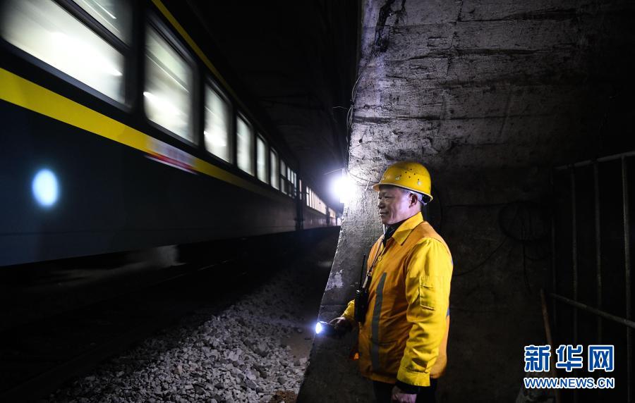 在廣西河池境內(nèi)黔桂鐵路線上的鄧山隧道,中國鐵路南寧局集團有限公司柳州工務段的4名看守工輪換值班,依靠手電筒在黑暗中穿行,及時巡查隧道中可能出現(xiàn)的各種隱患,確保每天經(jīng)隧道運行的59趟客貨列車春運安全。鄧山隧道全長773米,是一個需要人員全天候看守的鐵路隧道。