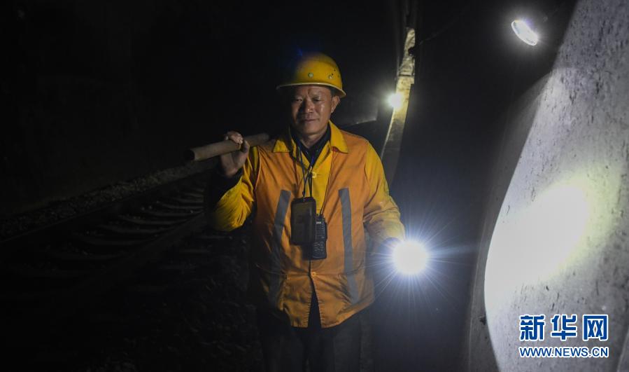 在廣西河池境內(nèi)黔桂鐵路線上的鄧山隧道,中國鐵路南寧局集團(tuán)有限公司柳州工務(wù)段的4名看守工輪換值班,依靠手電筒在黑暗中穿行,及時巡查隧道中可能出現(xiàn)的各種隱患,確保每天經(jīng)隧道運(yùn)行的59趟客貨列車春運(yùn)安全。鄧山隧道全長773米,是一個需要人員全天候看守的鐵路隧道。
