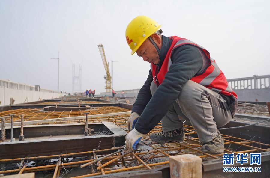 在安九高鐵江西段長(zhǎng)江特大橋的工地上,來(lái)自安徽的20多名中鐵四局建筑工人在大橋上緊張施工。為響應(yīng)就地過(guò)年政策和追趕因疫情耽誤的工期,他們決定今年不回老家過(guò)年了。