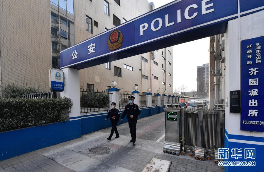 2月11日,在天津市紅橋區(qū)芥園派出所,楊曉惠(左)與民警高瑞鑫(右)出警巡邏。新華社發(fā)(孫凡越攝)