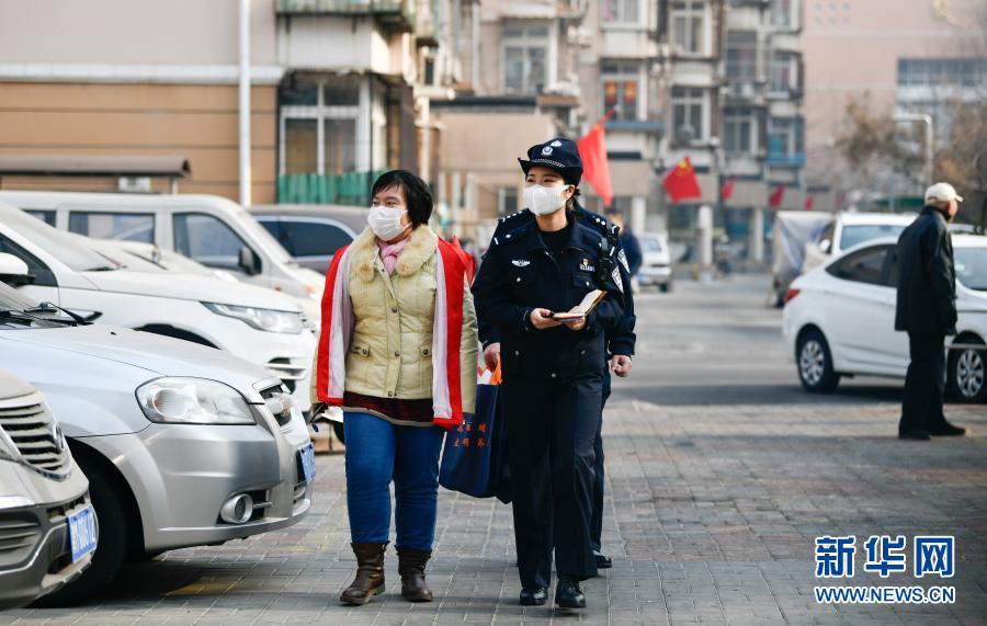 2月11日,在天津市紅橋區(qū)隆春里社區(qū),楊曉惠(右)與隆春里社區(qū)居委會網格員劉志鑫(左)聯(lián)合巡邏,查看小區(qū)安防情況。新華社發(fā)(孫凡越攝)