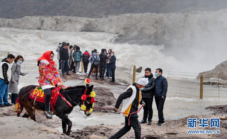 2月24日,游人在陜西壺口瀑布景區(qū)游覽。