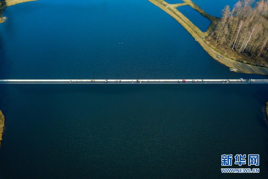 2月27日,人們在比利時小鎮(zhèn)波克萊克附近的“水中通道”中前行(無人機照片)。