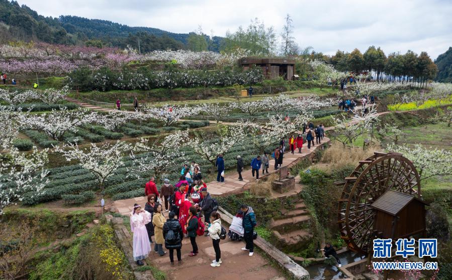 3月1日,游客在幸福古村里游玩(無人機(jī)照片)。新華社記者 江宏景 攝