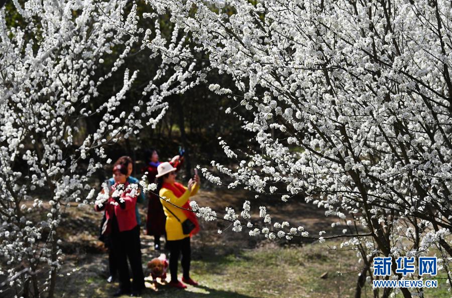 3月3日,市民在漢江之畔的安康市城東新區(qū)賞花。新華社記者 陶明 攝