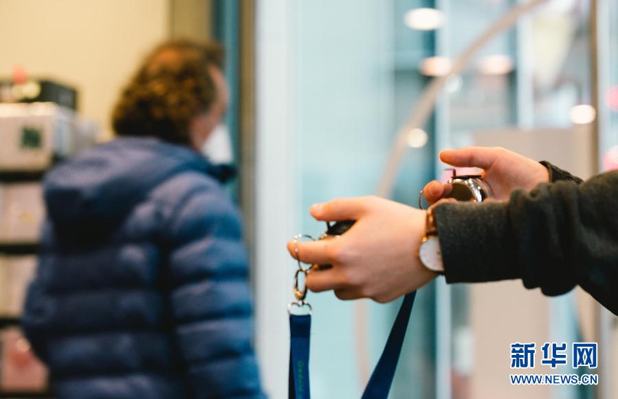 3月8日,德國(guó)科隆一家書(shū)店的工作人員在入口處手拿計(jì)數(shù)器限制客流。