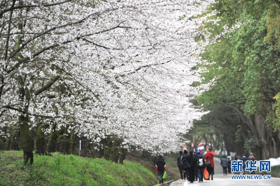 3月11日,游人在貴州省貴安新區(qū)的櫻花園內賞花游玩。