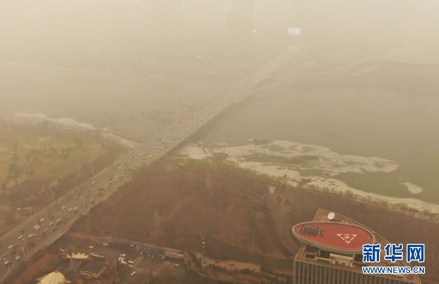 這是3月15日拍攝的遼寧省沈陽(yáng)市渾河橋(無(wú)人機(jī)照片)。當(dāng)日,我國(guó)北方多地出現(xiàn)沙塵天氣。新華社記者 楊青 攝