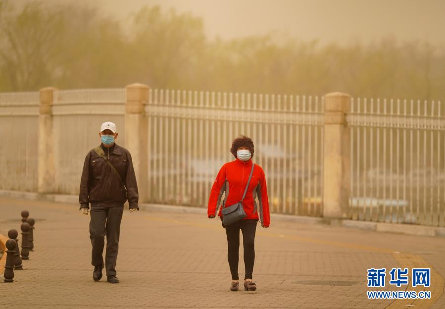 3月15日,行人從北京北海公園附近經(jīng)過(guò)。當(dāng)日,我國(guó)北方多地出現(xiàn)沙塵天氣。新華社記者 陳曄華 攝
