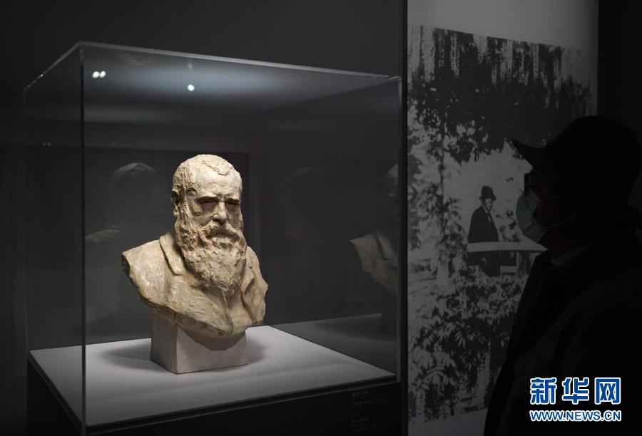 3月17日,觀眾在“莫奈與印象派大師展”上參觀莫奈石膏像。