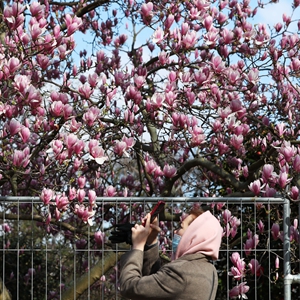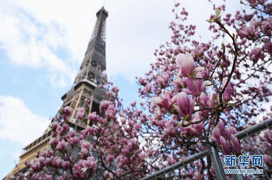 這是3月19日在法國巴黎埃菲爾鐵塔腳下的戰(zhàn)神廣場(chǎng)拍攝的盛放的玉蘭花。新華社記者高靜攝