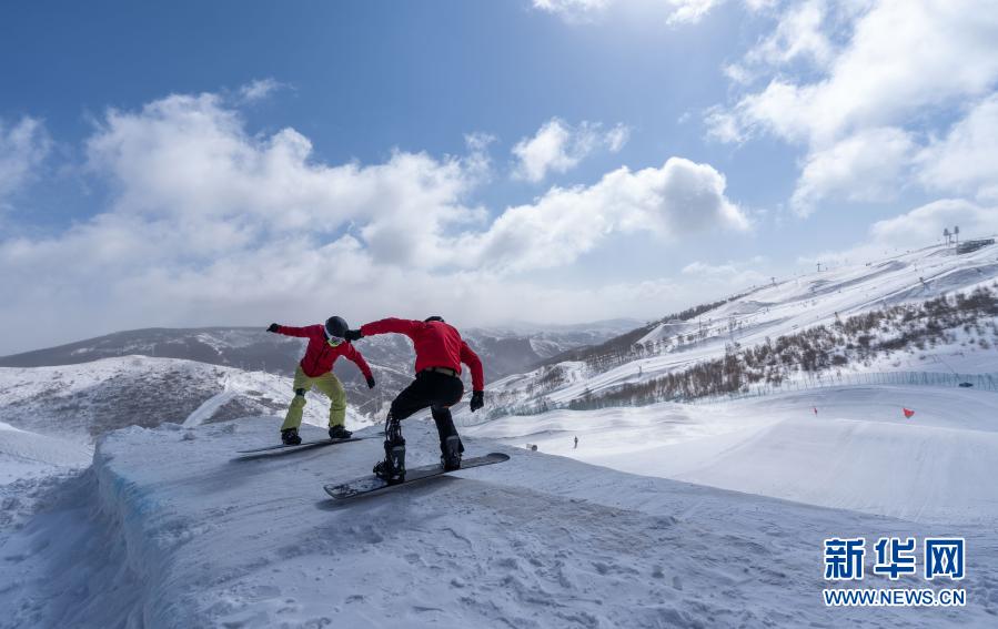 3月20日,冬殘奧會國家集訓(xùn)隊(duì)單板滑雪運(yùn)動員劉伊揚(yáng)(左)和武中偉在冬殘奧會訓(xùn)練基地訓(xùn)練。新華社記者 才揚(yáng) 攝
