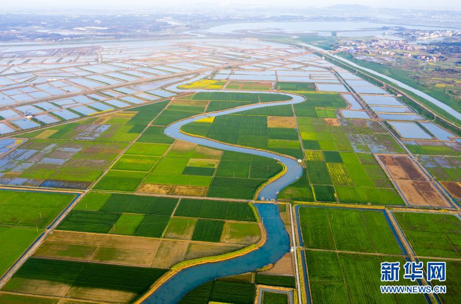 3月24日拍攝的江西省九江市彭澤縣芙蓉農(nóng)場的田園風(fēng)光(無人機(jī)照片)。