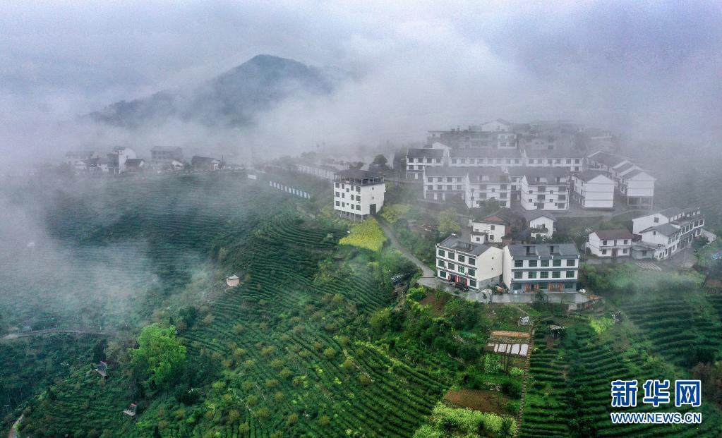 云霧中的流水鎮(zhèn)萬畝茶園(3月26日攝,無人機照片)。