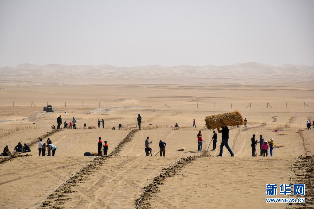 隨著天氣逐漸轉(zhuǎn)暖,在地處塔克拉瑪干沙漠南緣的新疆且末縣,人們紛紛行動起來植樹防沙,為沙漠增添綠色。
