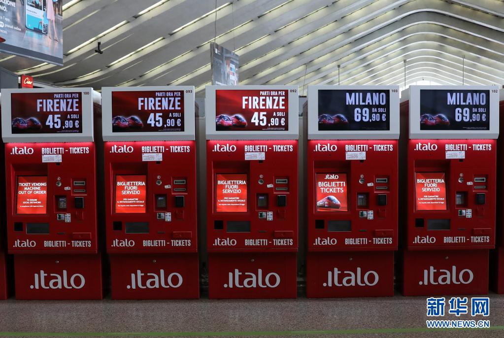 4月3日拍攝的意大利首都羅馬的特米尼火車站內的售票機。