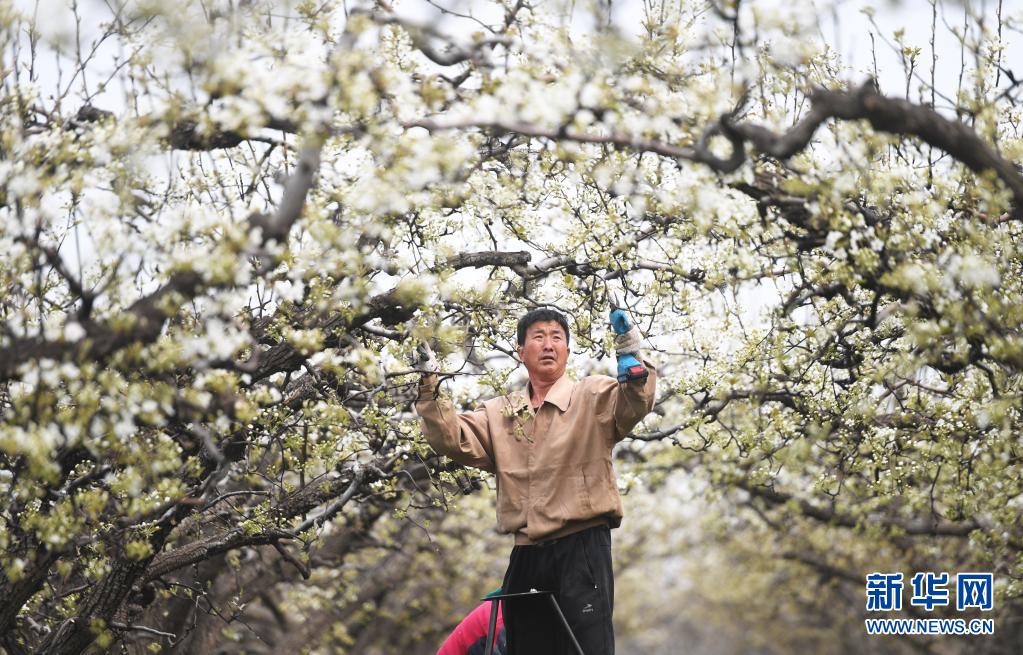 4月5日,河北省雄安新區(qū)雄縣雄州鎮(zhèn)馬蹄灣村果農在梨園為梨樹剪枝。