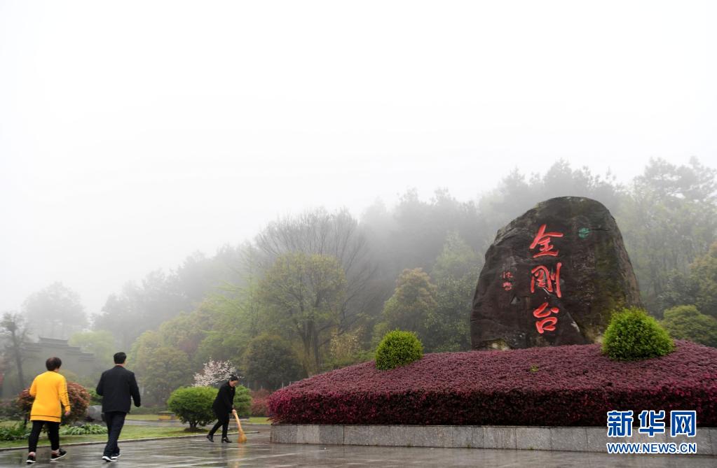 4月2日,曾祥有(左二)與妻子一起登上金剛臺(tái),準(zhǔn)備去紅軍洞祭奠。