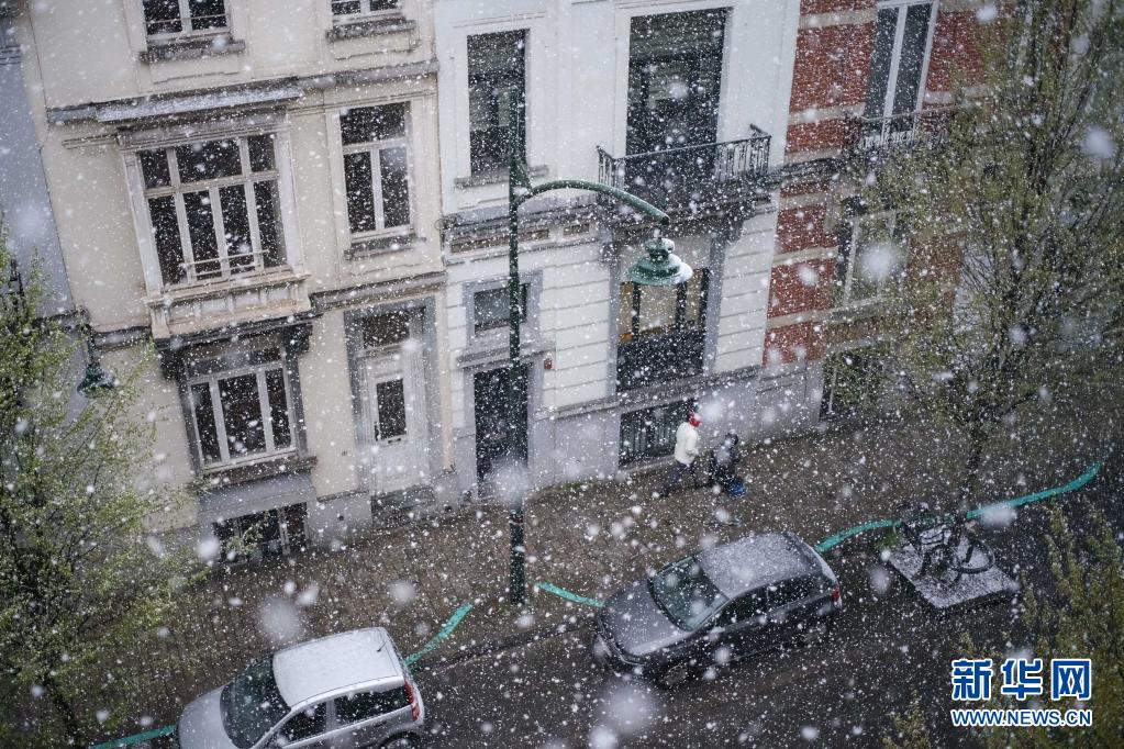 這是4月5日在比利時(shí)布魯塞爾拍攝的雪景。