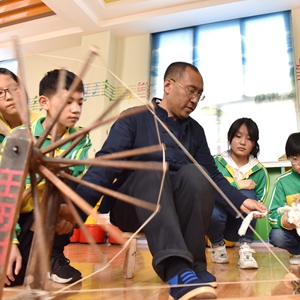 4月7日,威縣土布紡織技藝傳承人高慶海在威縣第四小學(xué)向?qū)W生演示老粗布紡織技藝。近年來,河北省邢臺市威縣積極開展“非遺傳承進(jìn)校園”活動,將當(dāng)?shù)靥厣沁z項(xiàng)目引入學(xué)校課堂,讓學(xué)生近距離感受民間傳統(tǒng)技藝的魅力,促進(jìn)非遺文化的保護(hù)和傳承。新華社記者 朱旭東 攝